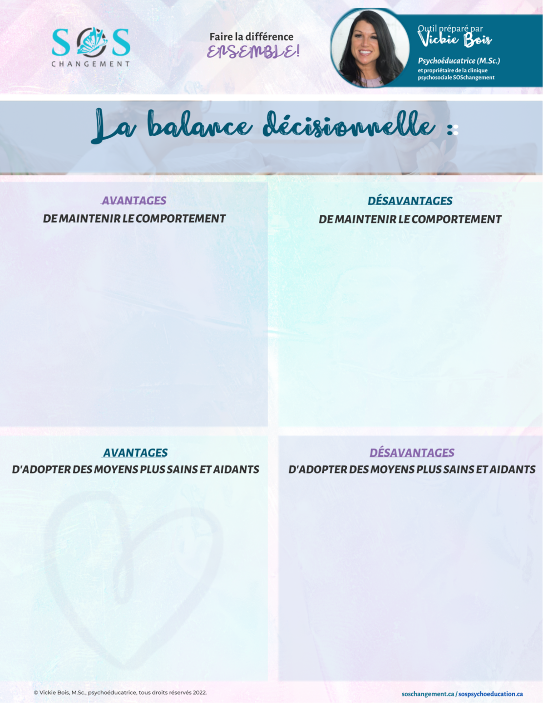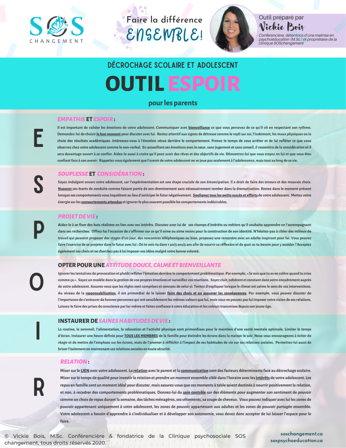 Professionnelle dévouée, visionnaire, rigoureuse ainsi que fondatrice de SOSpsychoéducation et SOSchangement.
